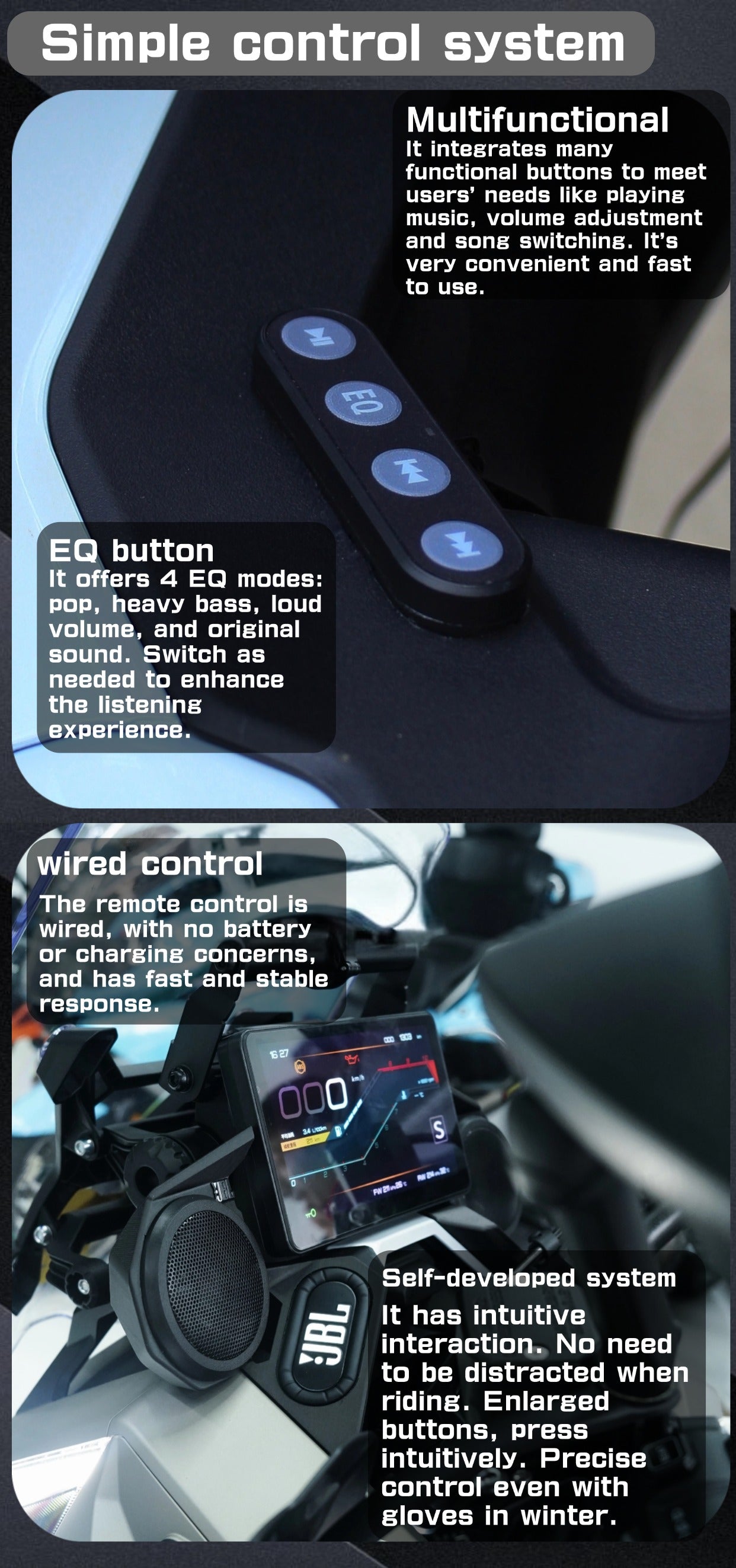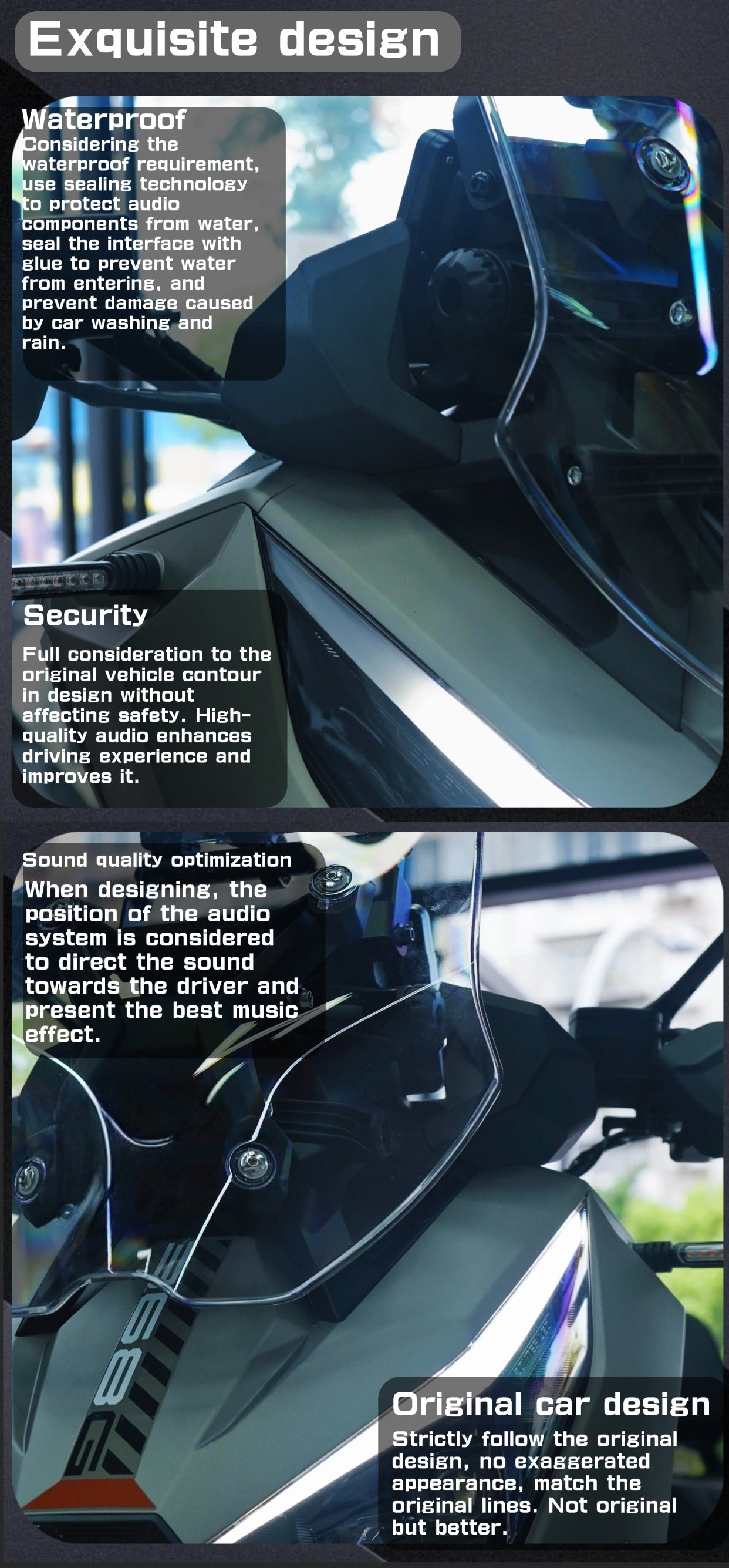 The box of our audio is independently developed and can be perfectly fitted to the body of the motorcycle.